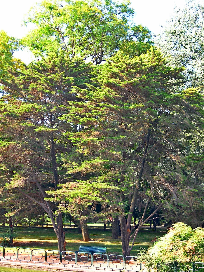 Árbol persistente de buen desarrollo, 25-30 m. de altura, porte piramidal ensanchando la base cuando crece. Ramas horizontales y cilíndricas. Los brotes nuevos despiden un olor característico. Tronco grueso ensanchado en la base. Corteza muy agrietada, grisácea en su madurez. Tronco ensanchado en la base.